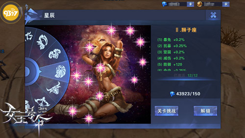 在新版本之前,《女王号令》之中的星辰系统作为一大修炼玩法,使得塞亚的勇士强者们可以在十二星座女神的指引之下,进行星辰之力的修炼,获得暴免、抗暴、坚固、减伤、防御、命中、闪避、固伤、暴伤、增伤、穿透以及暴击这十二大属性的加成,提升自身的战力!