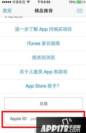 1.先打开苹果商店Appstore,在精品推荐的最下方,找到自己的Apple ID。