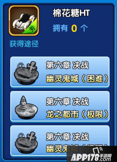 a.通过棉花糖HT券合成,棉花糖HT券需要300个,棉花糖HT券获得关卡:第六章决战-幽灵鬼域(困难),第六章决战-龙之都市(极限),第六章决战-幽灵鬼域(极限)