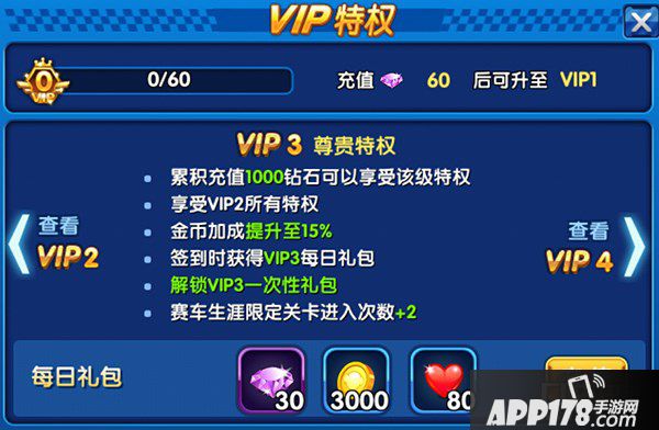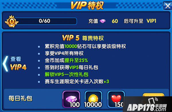 APP178手游网>跑跑卡丁车手机版>游戏攻略>VIP不同等级需要充值多少钻石 VIP特权一览