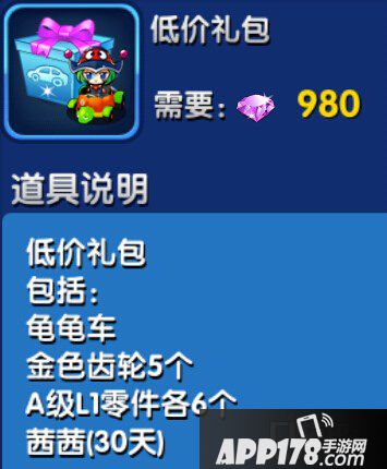 APP178手游网>跑跑卡丁车手机版>游戏攻略>跑跑卡丁车手机版低价礼包有什么 礼包介绍