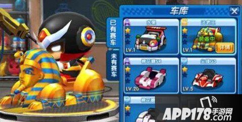 法老王。打开金色齿轮的详细信息就会看到这货放在第一个,似乎是最强的车。不过实际上这货虽然不能说最强,但是基本也没有能超越这辆车的了。初始到手的时候比较一般,速度性能都不是很强,技能倒是很给力。在比赛中可以说属于S车中的中上等级。