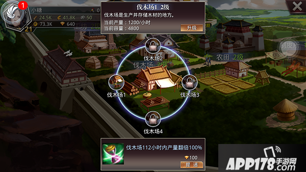 伐木场是生产并存储木材的地方,木材在封地里是最基础的材料,升级离不开他~随着伐木场等级的升高,产出也会变化哦~