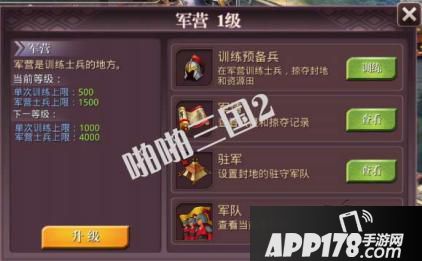 预约首先进入封地,然后点击军营,在训练预备兵里就可以训练你的士兵了!当然军营可不仅仅是训练士兵这么一个用处,别的功能也是要来看看的。探查军情,在他处驻军,以及调整你的军队信息。