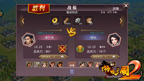 在大地图上,你还能发现其他玩家的封地。不过,千万不要盲目的去攻打,正如孙子兵法所说“知己知彼,百战百胜”。先使用“封地侦查”的指令,在一段时间后,即可得知该封地内的资源存放数量、守备兵力等信息,然后再决定是否值得进攻,是否有胜算。考虑过后,觉得万无一失,就可以大胆的执行“封地掠夺”命令了。玩家的部队将攻打该封地,与封地玩家的驻守部队进行战斗,胜利后可掠夺该城的部分资源。