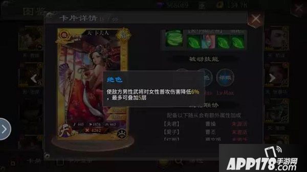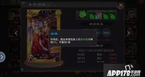 绝色:使敌方男性武将对女性普攻伤害降低6%,最多叠加5层