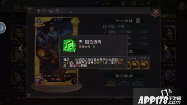 然后再看大乔50%+154点的物攻提升在辅助中稳占一流,还有40%+79的物防提升增加保命能力,被动提供开场己方全体武力强化为大乔16%智力,15s 。为斩击武将起手秒人提供了便利,开场期的大乔技能可重叠产生强力效果,然后最重要的地方到了技能消耗0!目标死亡前持续强化!2s延迟大部分情况无伤大雅,甚至有时还为战术提供便利。入手容易(6元新手礼包你值得拥有)被动提升稍有难度,但好歹酒馆有产,45等级招募及时不时的吴国招募可用。