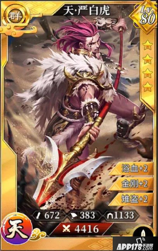 所以呢?从卡面上看《啪啪三国2》中新武将严白虎的定位将是:群雄枪兵。接下来跟着小乔殿下的步伐一起看看武将严白虎的卡牌各项技能属性吧!