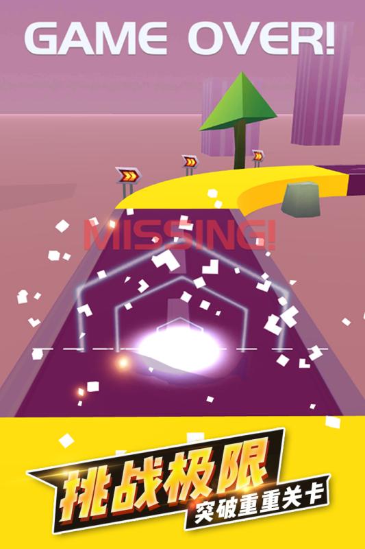 游戏中在指定地段点击或长按,便能完成加速、漂移等酷炫动作,多次连击还能获得分数加成,闯关挑战成功可以合成全新赛车形态。简单的操作体验配以简易多边形画风和电子乐,让驾驶过程格外刺激。游戏当前版本设计了9种不同风格的赛车和27种不同的外观,打造自己最爱的款式。