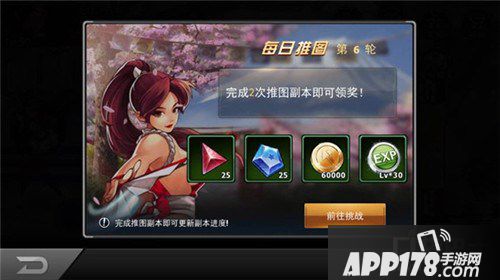 每日推图这个福利,是所有拳皇97ol玩家所喜爱的,原因是经验奖励跟着级别走而且*30倍如果你50级完成一次每日推图就会获得1500经验,每天可以完成N多次。
