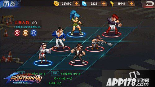 再然后就是站位的选择啦。因为是要打金币,所以防御是根本没必要的,如果我们有罗伯特的话,把罗伯特放在五号位,其中二号位要放最次要的熊魂或者蝮蛇魂格斗,比如猴子,比如千鹤,这些都是AOE的,必杀伤害比其他的要低一些;而四号位和六号位则要放单体或者整列的熊魂或者蝮蛇魂格斗,比如丽安娜,比如红丸,比如八神。在这里还是给大家额外介绍下八神吧,如果八神的战魂点满,可以把八神放在1号位或者3号位,因为他的必杀和其他人并不同步,主要是用来减防御。