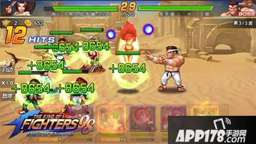 每一波都只有一个格斗家对手,打起来是很轻松的,毕竟6V1,如果大家的阵容中有八神,并且战魂培养的等级较高,一般情况下打第二波的金时,就可以满怒。此时记得优先对金释放八神大招,减防御,从而可以快速击杀,能很好地避免减员。其他格斗家打完金后,基本也可以攒满怒气,面对大门五郎时,丢出去就行了。