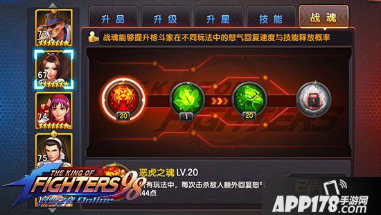 恶虎之魂,击杀额外回复怒气。由于竞技场中攻击顺序是随机的,所以虎魂几乎在竞技场中没有什么地位,目前虎魂格斗家也只有京和雅典娜还有火舞而已,推图,试练倒是非常好用。