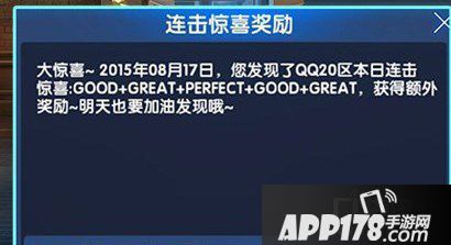 连击奖励是一个隐藏奖励,每日有系统自动刷新一组连击数字供大家寻找,可以打出来的会获得上述奖励,其机制为安卓区和苹果区互不通用,而且独自的系统里也不能共享,也就是说,如果一个你拥有好几个区服的账号,那你需要在好几个区服里边全部尝试,才能拿到所有的奖励。