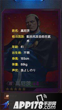 今天小编为大家介绍一下游戏中的高尼茨,玩家们是不是都想知道这个格斗家值不值得培养呢?相信看完这批昂攻略,玩家们对他会有新的认识。