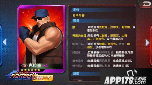 以上就是小编带来的拳皇98终极之战OL怒队成员克拉克详解,希望对大家有所帮助!了解更多精彩内容,请关注APP178手游《拳皇98终极之战OL》游戏专区!