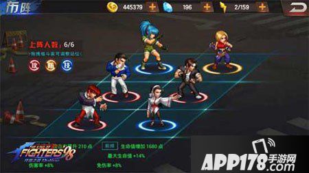 合理分配阵容位置,可使不同位置上的格斗家继承许些格斗家大招的加成效益,大幅度提升团队的作战能力。莉安娜是切后排的格斗家,所以搭配上几个可以切到后排的格斗家能力可以得到更好体现,在这个阵容中,罗伯特和草薙京都可以打一列,而千鹤是群控,也能打到后排。