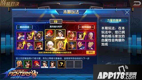 当然,想玩转巅峰不仅仅只依靠这几条计谋,更需要你掌握本期的巅峰规则,例如力量继承是你已拥有的格斗家攻防血属性有额外加成,那么此时你去选择一个你没有拥有的罗伯特斯不如选择一个你已拥有的草薙京。并且玩家们还要深入了解每个格斗家的技能配合,这样才能让你在巅峰中更好的发挥。