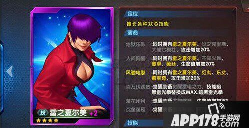 拳皇98终极之战ol雷之夏尔美值不值得培养?拳皇98终极之战ol雷之夏尔美定位如何?很多玩家在得到雷之夏尔美时都不知道她能和什么阵容搭配,下面小编就为大家带来雷之夏尔美的定位分析。
