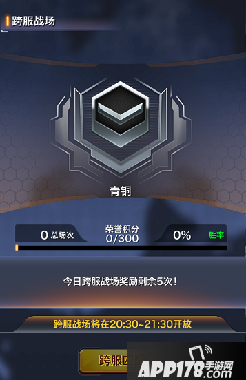 跨服战每日20:30—21:30开放一个小时,开放期间,玩家可以和其他玩家实时对战,系统会自动匹配实力相当的对手,每天参加跨服战总共可以获得5次奖励(无论胜负),之后再参加跨服战,每次可获得1000金币和荣誉积分。