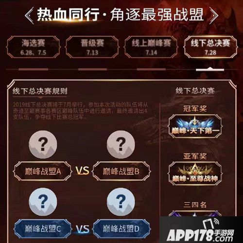 2019线下总决赛将于7月28日举行,参加本次活动的队伍将从奇迹至巅赛事各赛区巅峰队伍中进行邀请,最终邀请出4支队伍,争夺线下比赛总冠军。
