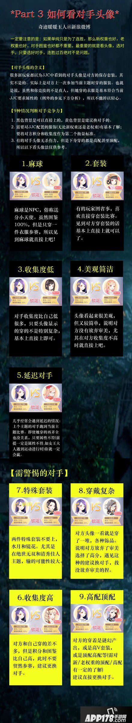 在早期版本上稍微做了修改,方便新玩家看到。关于连胜技巧,其实就是看头像大法。如果想要拿到连胜,新权重也好,老权重也好,甚至是对手的图鉴怎样都不重要,最重要的就是选对适合自己的对手,通常只要刷新3-5次,就能刷出合适的对手~所以一定要有耐心哦!