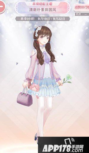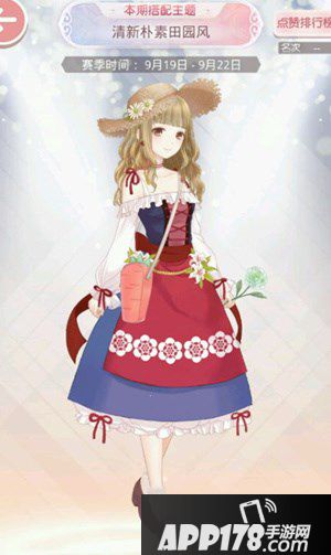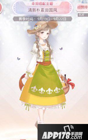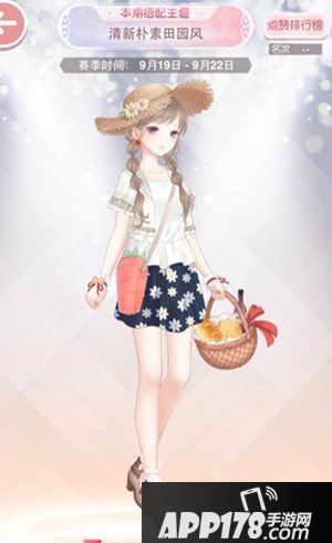 此次主题为清新朴素田园风,玩家们需要抓住的点就是田园和朴素,不能有太花俏的打扮,但又透漏着清新的风味即可获得优异的成绩了。