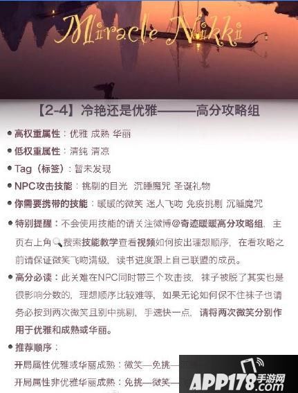 奇迹暖暖新版联盟委托2-4关卡的主题是冷艳还是优雅,具体怎办么搭配呢?下面一起来看看冷艳还是优雅的属性及S级高分搭配攻略吧。