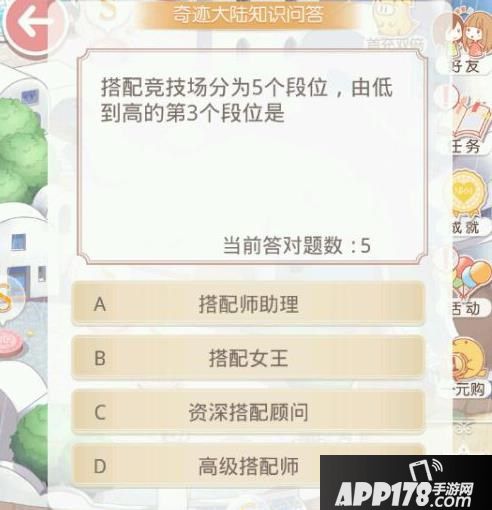 奇迹暖暖搭配竞技场分为5个段位甶低到高的第3个段位是?这个问题只要对搭配竞技场的规则了解了,就没有什么问题,下面小编为大家揭晓下正确答案,一起;来看看吧!