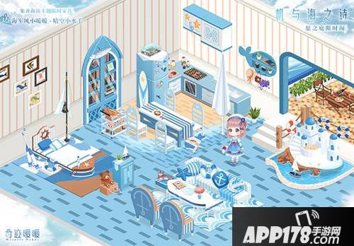 4月10日5:00—4月16日23:59,在小屋愿之庭的限时抽奖阁“帆与海之诗”许愿,可获得精美海洋主题家具。集齐所有主题家具,即可解锁海军风小暖暖【晴空小水手】!