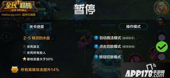 在战场内,玩家也可以通过点击界面左上角的齿轮状图标进行操作模式的选择,但却不能进行选敌模式的切换。在玩家进入游戏后,默认的操作设置是自动施法的操作模式和优先选最近单位的选敌模式。