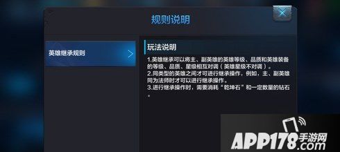 在英雄继承中,召唤师们仅需要消耗一定的乾坤石和钻石,召唤师们可以将主、副英雄的等级、品质,以及英雄装备的等级、品质、星级对调。还要记得同类型英雄才能继承哦~