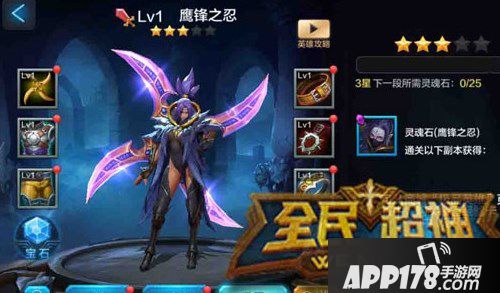 鹰锋之忍初始为3星,想要升星则需要不同数量的灵魂石。现阶段由于鹰锋之忍的灵魂石只能通过商城购买,或者靠人品爆发通过抽奖获得,所以想要升到5星还是有一定的难度的,不过相信小伙伴们一直努力的话,一定可以升到5星的。