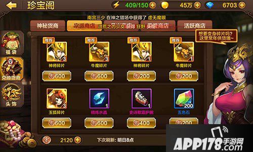 宗派商店:可以用忠义币兑换神将和牛魔以及玉狐的碎片,其中会出现5个或3个碎片在一起的,大家一定要买,也就1000忠义币。
