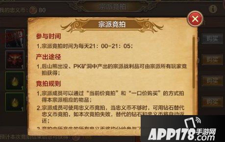 宗派成员可以使用忠义币在竞拍中淘自己想要的战利品
