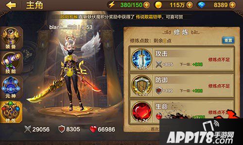 修炼:每一次三星通关,都能得到修炼点,普通的2点,boss关3点,多往后闯点关吧!