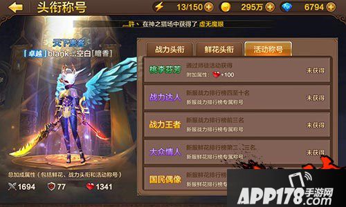 战力王者:战力榜上的前三名即可获得,但是会根据情况消失,不过只要是战力榜前40名,还是有战力达人的称号的。
