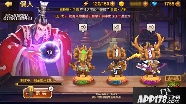 偶人随着时间的推移而自动生产,每半小时产生1个,品质随机。玩家可在游戏界面右下角的偶人界面可将累积的偶人一次性领取。需要注意的是,偶人的持有上限为24个,但溢出的偶人可在第二天花费少量钻石进行回购!