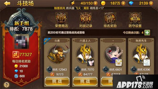 《全民斗战神》的斗技场在机制上别具一格,其巧妙的用段位代替了单一的排名制,从而将不同水平的玩家进行有效划分,避免了高战力玩家与低战力玩家之间的恶性竞争。斗技场段位从低到高依次为新手组、青铜组、白银组、黄金组、钻石组、传说组,段位越高,越能彰显玩家的实力。