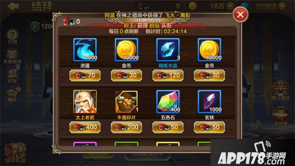 不仅如此,结拜后的玩家还可领取额外的活跃度礼包,完成日常任务即可获得。另外,玩家和结拜好友共同参与神之猎场挑战,也可获得亲密度。当亲密值累积达到一定数值后,结拜队伍的“齐心协力”等级将会得到提升,并可增加角色的攻击、防御、生命值等多项属性,提升战力。