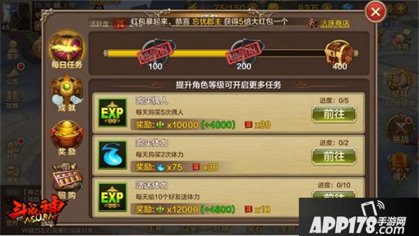 每日任务是《全民斗战神》中经验获取的最重要途径。该系统将游戏中最值得体验的多项玩法集中显示,如试炼之地、神之猎场、组队Boss等。这些任务由游戏精挑细选,不仅玩法十分有趣,还能带给玩家非常丰厚的奖励。