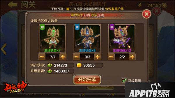 偶人扫荡是《全民斗战神》中非常贴心的玩法之一。当玩家通关主线关卡后,即可通过消耗偶人对关卡进行扫荡,直接获取大量经验值和装备奖励。偶人扫荡和当前体力无关,玩家拥有多少偶人,便能进行多少次扫荡。