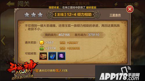 12-4倾力相助难度还是比较高的,不过大家只要战斗力足够并且了解如何躲避BOSS的技能,三星通关还是很容易的。