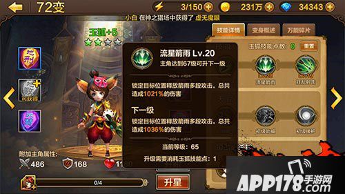 分析:聚魔射击作为正常的浮空技,没有什么亮点,但是流星箭雨不仅攻击高,范围广,长时间的持续输出,可以让精英怪无法释放技能,非常实用。而玉狐的大招狂乱射击,伤害爆表,不管是普通小怪,还是大型BOSS,都是很好的造成输出。