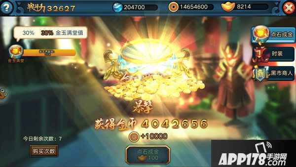 《全民大主宰》获得大量金币主要有2个途径:木神殿和点石成金。
