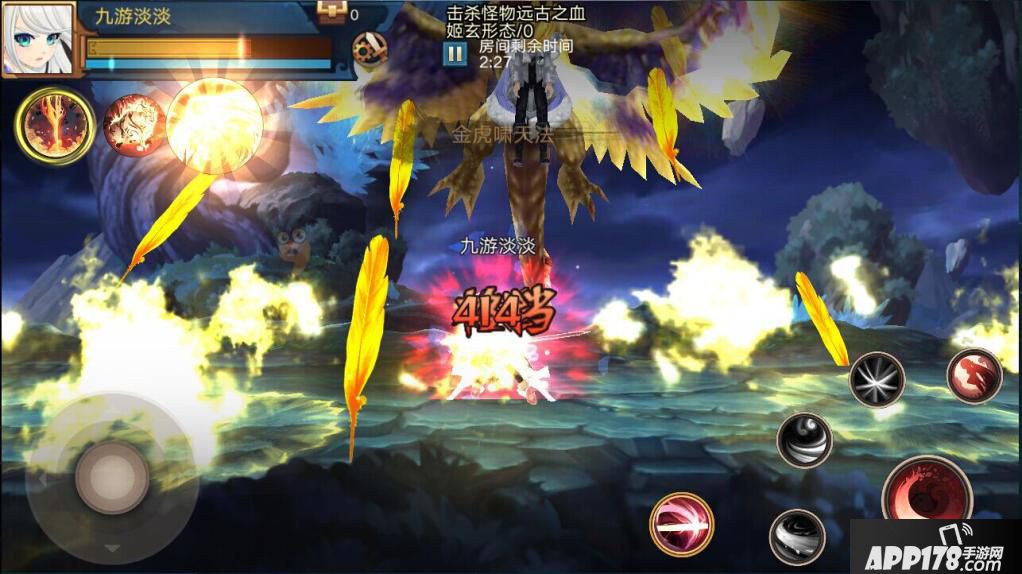九级浮屠塔第9层,BOSS第三变的时候,BOSS形象是不是很碉堡,爪子抓着未变身时的BOSS,翅膀挥着大范围技能的金色羽毛,还是很震撼的,想想有点像奥特曼变身的时候手伸开时的画面,哈哈。(为了截这张图,差点死掉了。。。)