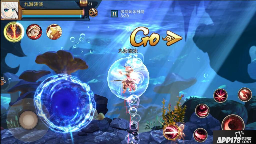 如身在海底世界(灵阵湖底地图),是不是很美,边上还有旋窝,天上还有一束光照射而进,而主角身上的罩子并不是我的灵决-鎏金神盾释放的喔,是站在气泡处被击中的,击中后会自动浮空,和灵决很相似呢,挺有意思的。