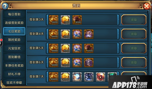 七日奖励界面和连续签到奖励