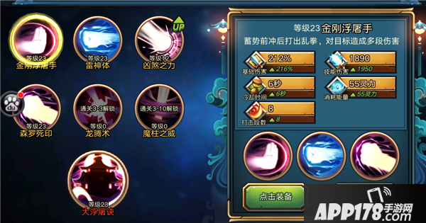 金刚浮屠手——优点在于CD时间短,消耗MP少