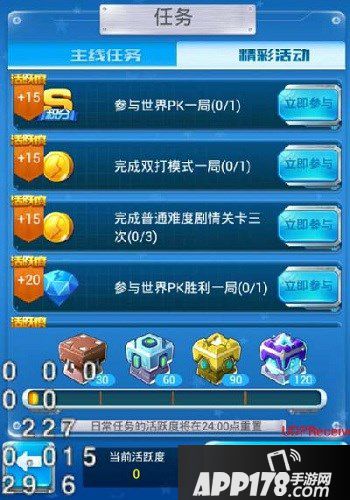 任务系统新增活动任务,每天完成可获得大量钻石、金币、积分奖励,还能累积活跃度,领高级豪礼。每天打任务,成长赚钱更简单!